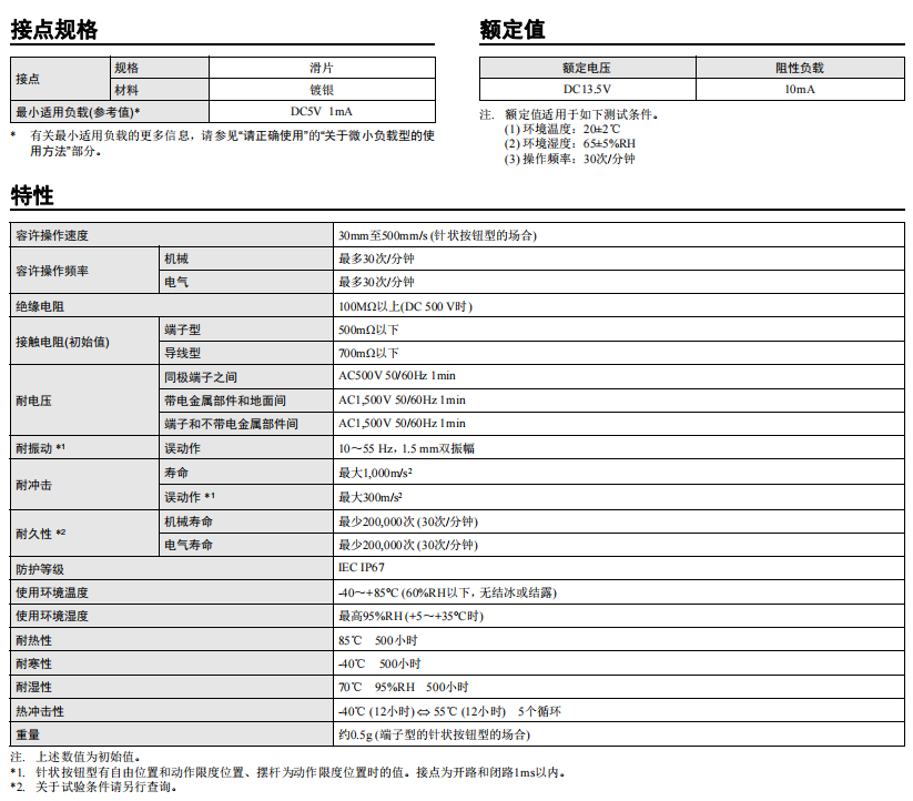 歐姆龍微動(dòng)開關(guān)